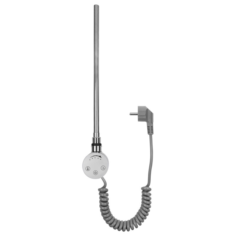 Grzałka w kolorze chromowym, o mocy 200W, kabel spiralny z wtyczką.