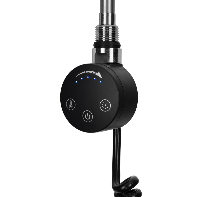 Grzałka w kolorze czarnym, o mocy 300W, kabel spiralny z wtyczką.
