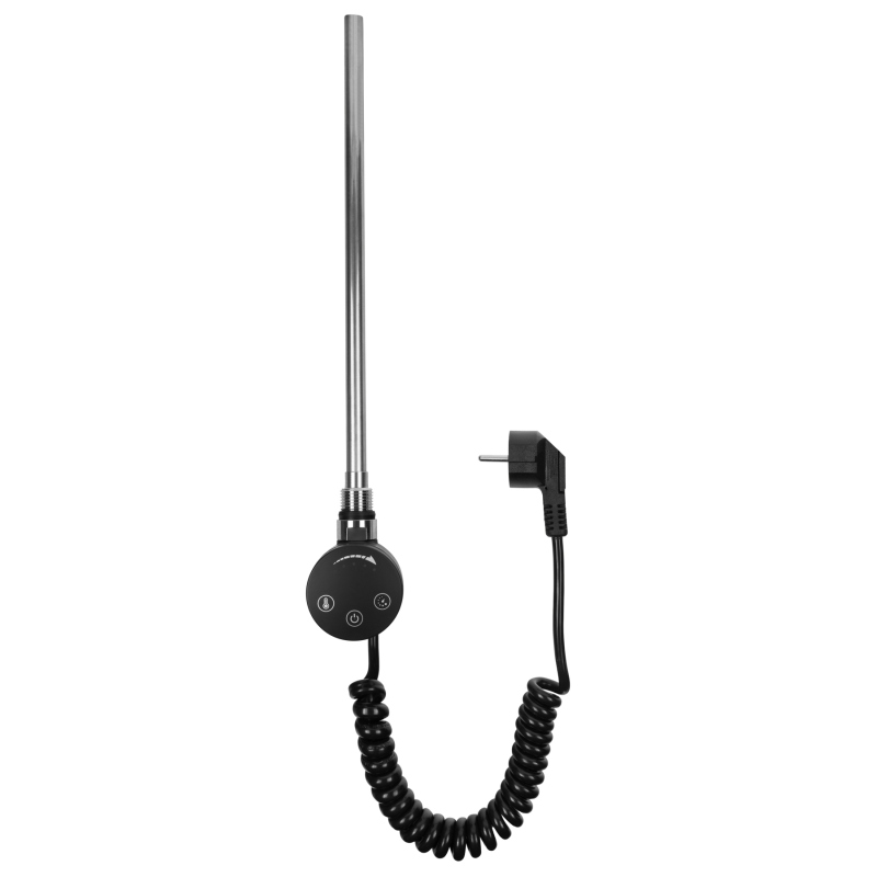 Grzałka w kolorze czarnym, o mocy 600W, kabel spiralny z wtyczką.