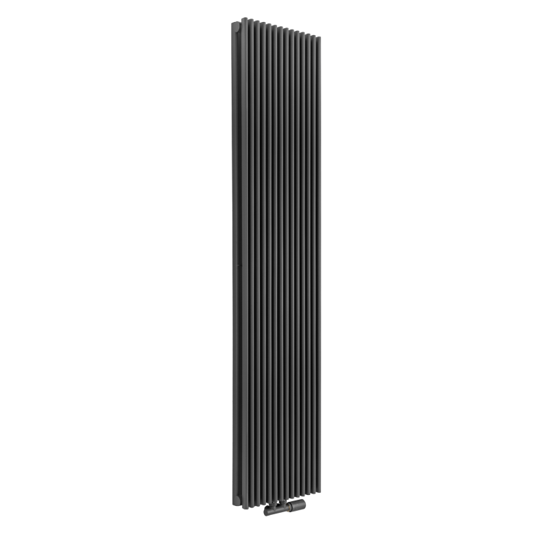 Podkreśl charakter wnętrza pionowym grzejnikiem Edo ED2E 1800x394. Jego elegancka, kolumnowa forma i nowoczesny grafitowy kolor idealnie wpisują się w estetykę nowoczesną, minimalistyczną, contemporary czy klasyczną z nowoczesnym twistem. Dwa rzędy pionowych profili o zaokrąglonym przekroju tworzą wyrafinowaną, harmonijną całość, zapewniając znacznie wyższą wydajność grzewczą niż modele jednorzędowe. To nie tylko efektywne źródło ciepła, ale i wyrazisty akcent dekoracyjny, który doskonale wypełni większe ściany, dodając wnętrzu głębi i stylu.