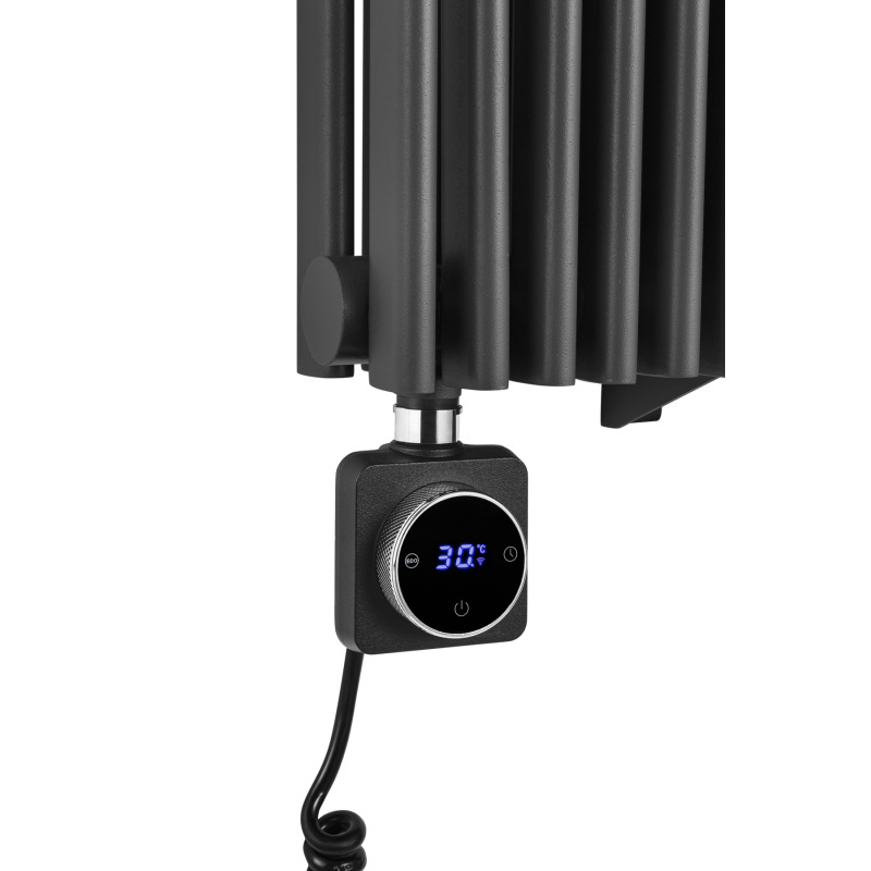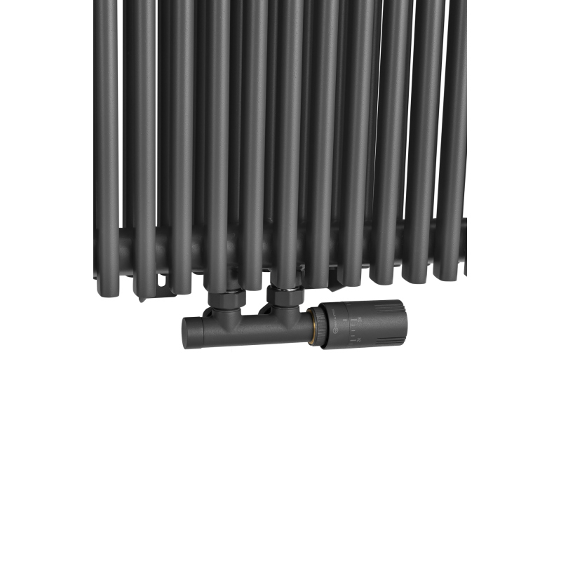 Podkreśl charakter wnętrza pionowym grzejnikiem Edo ED2E 1800x620. Jego imponująca, bardzo szeroka i kolumnowa forma oraz nowoczesny grafitowy kolor idealnie wpisują się w estetykę nowoczesną, minimalistyczną, contemporary czy klasyczną z nowoczesnym twistem. Dwa rzędy obszernych profili o zaokrąglonym przekroju tworzą wyrafinowaną, harmonijną całość, zapewniając znacznie wyższą wydajność grzewczą niż modele jednorzędowe. To efektywne źródło ciepła i kluczowy element dekoracyjny, który majestatycznie wypełni duże, otwarte przestrzenie, dodając wnętrzu głębi i stylu.
