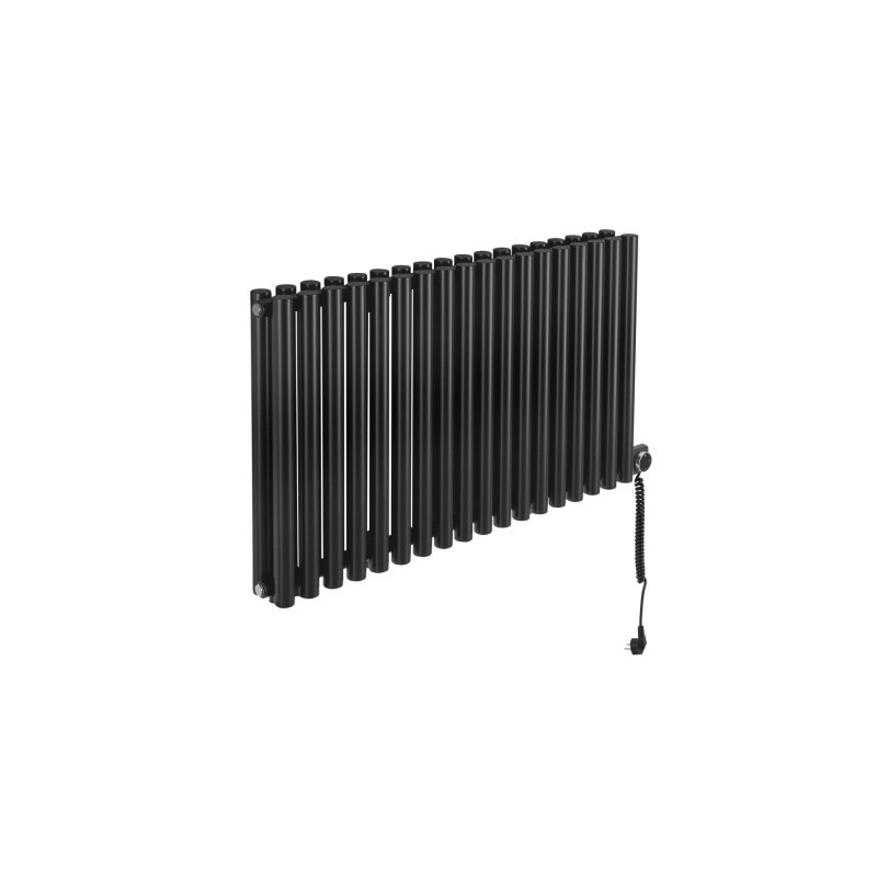Grzejnik dekoracyjny elektryczny poziomy Gilda 600x1062 czarny, grzałka z prawej strony