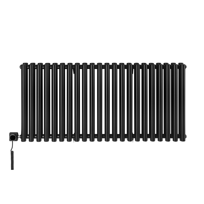 Grzejnik dekoracyjny elektryczny poziomy Gilda 600x1298 czarny, grzałka z lewej strony