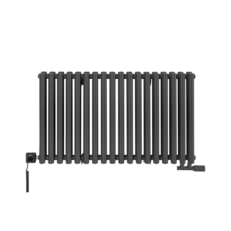 Grzejnik dekoracyjny Gilda GD2E 600x1062 w kolorze grafitowym to nowoczesny, pionowy grzejnik stalowy, idealny do salonu, sypialni, łazienki lub przedpokoju. Wykonany z eleganckich, okrągłych profili, łączy stylowy wygląd z wysoką funkcjonalnością. Może działać jako grzejnik wodny, elektryczny lub hybrydowy. Dzięki możliwości montażu grzałki świetnie sprawdza się także poza sezonem grzewczym. Posiada dolne podłączenie 50 mm – z prawej lub lewej strony – co ułatwia montaż i dopasowanie do instalacji. Grzejnik Gilda to doskonały wybór do nowoczesnych wnętrz. W zestawie: korek i odpowietrznik.