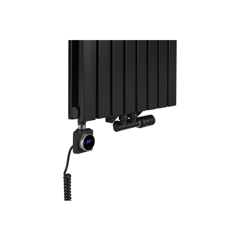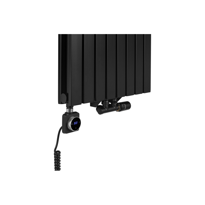 Grzejnik dekoracyjny Judy JD2E 1600x472 w kolorze czarnym to elegancki, stalowy grzejnik pionowy, idealny do nowoczesnych wnętrz. Jego smukła i minimalistyczna forma doskonale sprawdza się w salonach, sypialniach czy korytarzach, podkreślając współczesny charakter aranżacji. Może pracować jako grzejnik wodny, hybrydowy lub elektryczny, co zapewnia elastyczność montażu i użytkowania. Możliwość instalacji grzałki pozwala na niezależne ogrzewanie poza sezonem grzewczym. Grzejnik posiada podłączenie dolne, środkowe, o rozstawie 50 mm. W zestawie znajduje się korek i odpowietrznik.