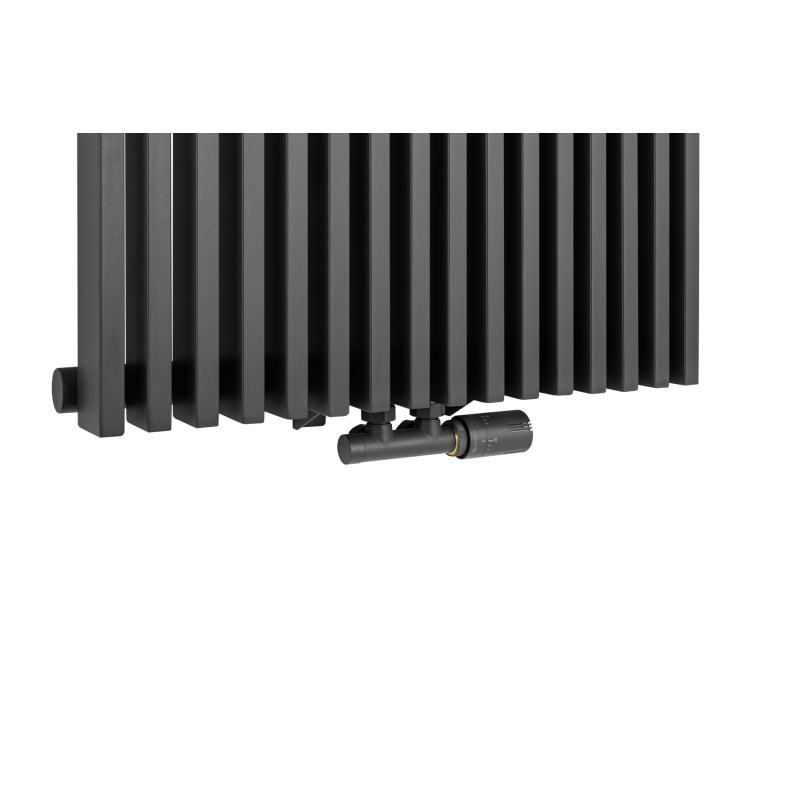 Grzejnik dekoracyjny Mild 1800x608 w kolorze grafitowym to propozycja dla osób ceniących wyrazistą geometrię i nowoczesną estetykę. Jego pionowa forma opiera się na regularnie rozmieszczonych, płaskich panelach o ostrych, precyzyjnie zarysowanych krawędziach. Taka konstrukcja tworzy wyrazisty efekt graficzny na ścianie, który doskonale komponuje się z wnętrzami w stylu minimalistycznym, modern classic czy japandi.