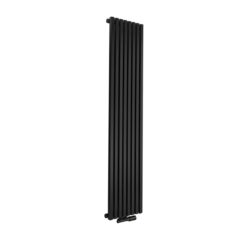 Grzejnik dekoracyjny Nomad ND1E 1600x360 w kolorze czarnym to propozycja dla osób poszukujących nowoczesnego akcentu do wnętrza, który łączy funkcjonalność z estetyką. Jego pionowa konstrukcja oparta jest na wyrazistych, prostokątnych panelach o lekko zaokrąglonych krawędziach, ułożonych z delikatnym odstępem, co nadaje całości subtelnego rytmu i wrażenia lekkości. Dzięki temu grzejnik prezentuje się elegancko i harmonijnie – idealnie wpisując się w przestrzenie utrzymane w stylu japandi, nowoczesnym lub minimalistycznym.
