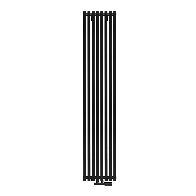 Grzejnik dekoracyjny Nomad ND1E 1800x360 w kolorze czarnym to propozycja dla osób poszukujących nowoczesnego akcentu do wnętrza, który łączy funkcjonalność z estetyką. Jego wąska, pionowa konstrukcja oparta jest na wyrazistych, prostokątnych panelach o lekko zaokrąglonych krawędziach, ułożonych z delikatnym odstępem, co nadaje całości subtelnego rytmu i wrażenia lekkości. Dzięki temu grzejnik prezentuje się elegancko i harmonijnie – idealnie wpisując się w przestrzenie utrzymane w stylu japandi, nowoczesnym lub minimalistycznym.