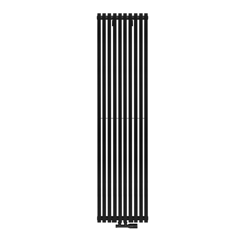 Grzejnik dekoracyjny Nomad ND1E 1800x450 w kolorze czarnym to propozycja dla osób poszukujących nowoczesnego akcentu do wnętrza, który łączy funkcjonalność z estetyką. Jego pionowa konstrukcja oparta jest na wyrazistych, prostokątnych panelach o lekko zaokrąglonych krawędziach, ułożonych z delikatnym odstępem, co nadaje całości subtelnego rytmu i wrażenia lekkości. Dzięki temu grzejnik prezentuje się elegancko i harmonijnie – idealnie wpisując się w przestrzenie utrzymane w stylu japandi, nowoczesnym lub minimalistycznym.