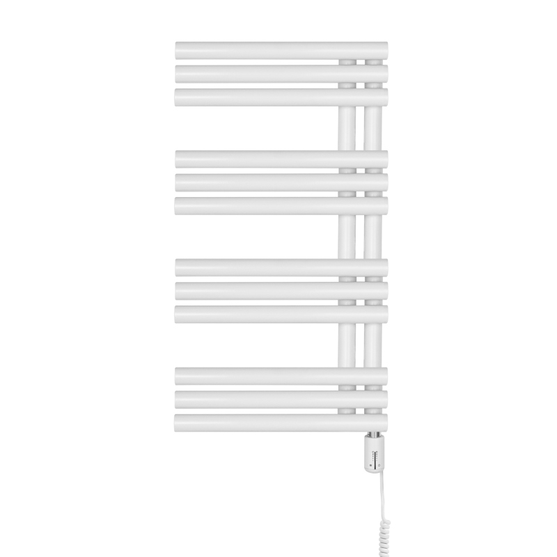 Grzejnik łazienkowy elektryczny Zodiak 737x400 biały, grzałka z prawej strony
