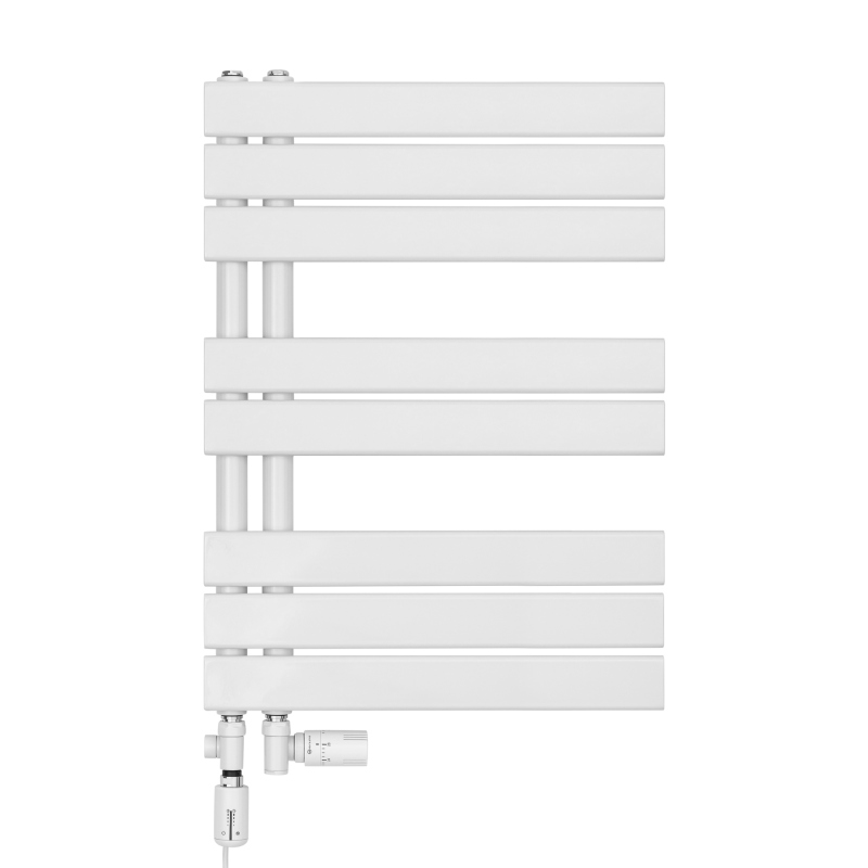 Odkryj hybrydowy grzejnik łazienkowy UCA 700x500 biały —połączenie elegancji i technologii. Dzięki wielu funkcjom grzałki TANGO, zapewnia niebywały komfort. Rozstawienie paneli pozwala na zawieszanie pomiędzy nimi ręczników. Idealny dla nowoczesnych łazienek!