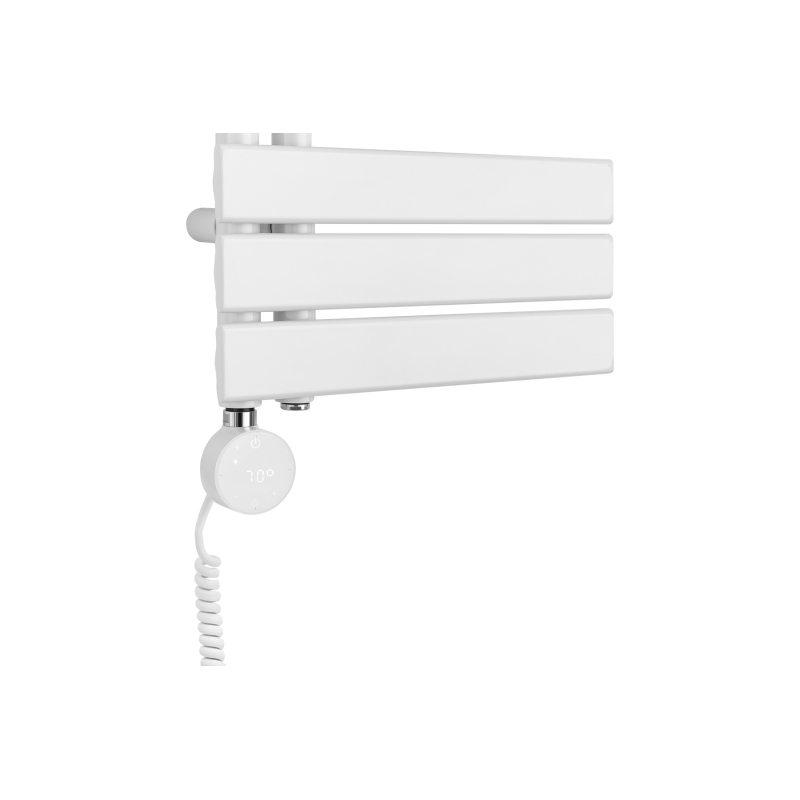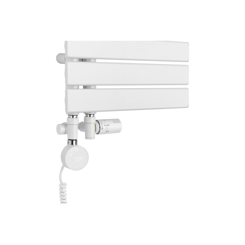 Grzejnik łazienkowy Uncommon Asymmetrical 700x400 w kolorze białym to stylowe rozwiązanie do nowoczesnych i funkcjonalnych wnętrz. Charakterystyczny układ poziomych profili, przesuniętych asymetrycznie na jedną stronę, łączy minimalistyczną estetykę z wygodą użytkowania. Dzięki otwartej konstrukcji umożliwia szybkie odwieszanie ręczników i sprzyja utrzymaniu porządku w codziennej rutynie. Model dostępny jest w wersji wodnej, elektrycznej lub hybrydowej, co pozwala dopasować go do stylu życia domowników i rytmu sezonu. Posiada dolne podłączenie o rozstawie 50 mm z możliwością wyboru strony.