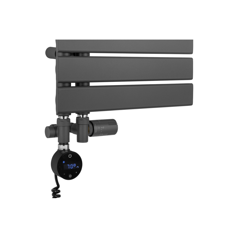 Grzejnik łazienkowy Uncommon Asymmetrical 700x400 w kolorze grafitowym to stylowe rozwiązanie do nowoczesnych i funkcjonalnych wnętrz. Charakterystyczny układ poziomych profili, przesuniętych asymetrycznie na jedną stronę, łączy minimalistyczną estetykę z wygodą użytkowania. Dzięki otwartej konstrukcji umożliwia szybkie odwieszanie ręczników i sprzyja utrzymaniu porządku w codziennej rutynie. Model dostępny jest w wersji wodnej, elektrycznej lub hybrydowej, co pozwala dopasować go do stylu życia domowników i rytmu sezonu. Posiada dolne podłączenie o rozstawie 50 mm z możliwością wyboru strony.