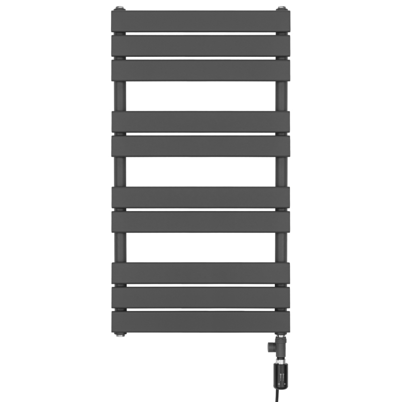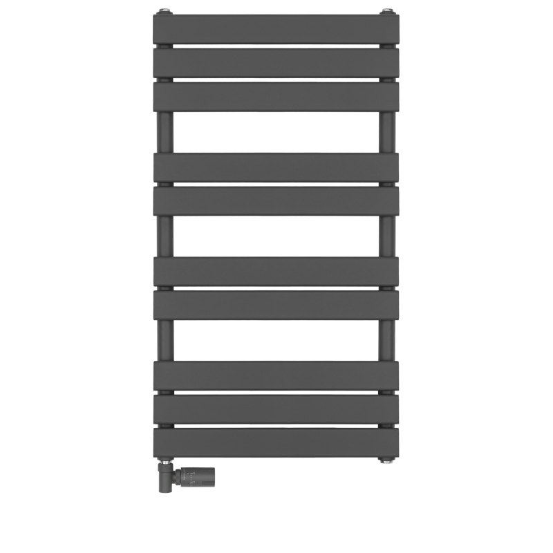 Grzejnik łazienkowy Uncommon Symmetrical 911x500 w kolorze grafitowym to elegancka propozycja do nowoczesnych łazienek. Jego symetryczna forma z poziomych, prostokątnych profili tworzy minimalistyczny i uporządkowany wygląd, który pasuje do współczesnych aranżacji. Kompaktowa konstrukcja świetnie sprawdza się w mniejszych przestrzeniach, zapewniając wygodę użytkowania i możliwość zawieszenia ręczników. Grzejnik może pracować jako model wodny, elektryczny lub hybrydowy, oferując komfort cieplny przez cały rok. Posiada dolne szerokie podłączenie z opcją wyboru strony.