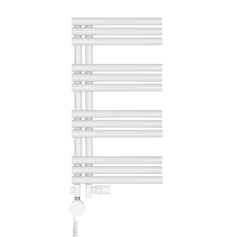 Model Zodiak został wykonany z wysokiej jakości profili o przekroju okrągłym, co nadaje mu lekki, elegancki wygląd i podkreśla jego nowoczesny design. Grzejnik posiada dolne podłączenie o rozstawie 50 mm, możliwe do wyboru po lewej lub prawej stronie, co zapewnia elastyczność montażu i łatwe dopasowanie do istniejącej instalacji.