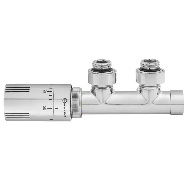 Nowoczesny zawór do grzejników z podłączeniem D50, łączący estetykę, wygodę użytkowania i wysoką jakość. Idealny do współczesnych wnętrz, zapewnia precyzyjną kontrolę temperatury dzięki podziałce 4-28°C zamiast skali 1-5.